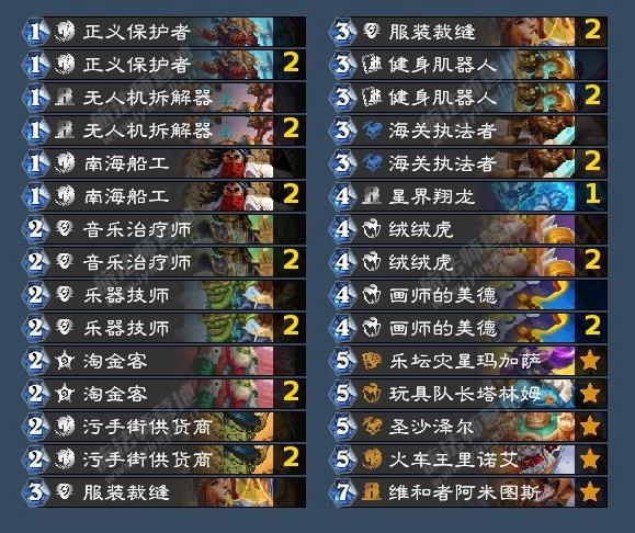 10、攀上新高、化工泄漏与补水区这几张牌为小光头提供了出色的闯关能力,123568的防战不仅能压制环境里绝大多数快攻卡组,面对卡手的OTK卡组也有一战之力。在卡组构筑时,防战有个关键选择:是否将摄影师菲兹尔放在乐队经理精英牛头人酋长的组合之外。结论是若环境节奏偏慢,就把拍照单独拿出来;反之,不如把过牌都满编,尽量提升五费回合用化工泄漏拉出奇利亚斯的概率。
