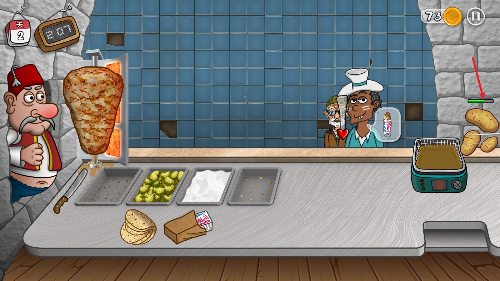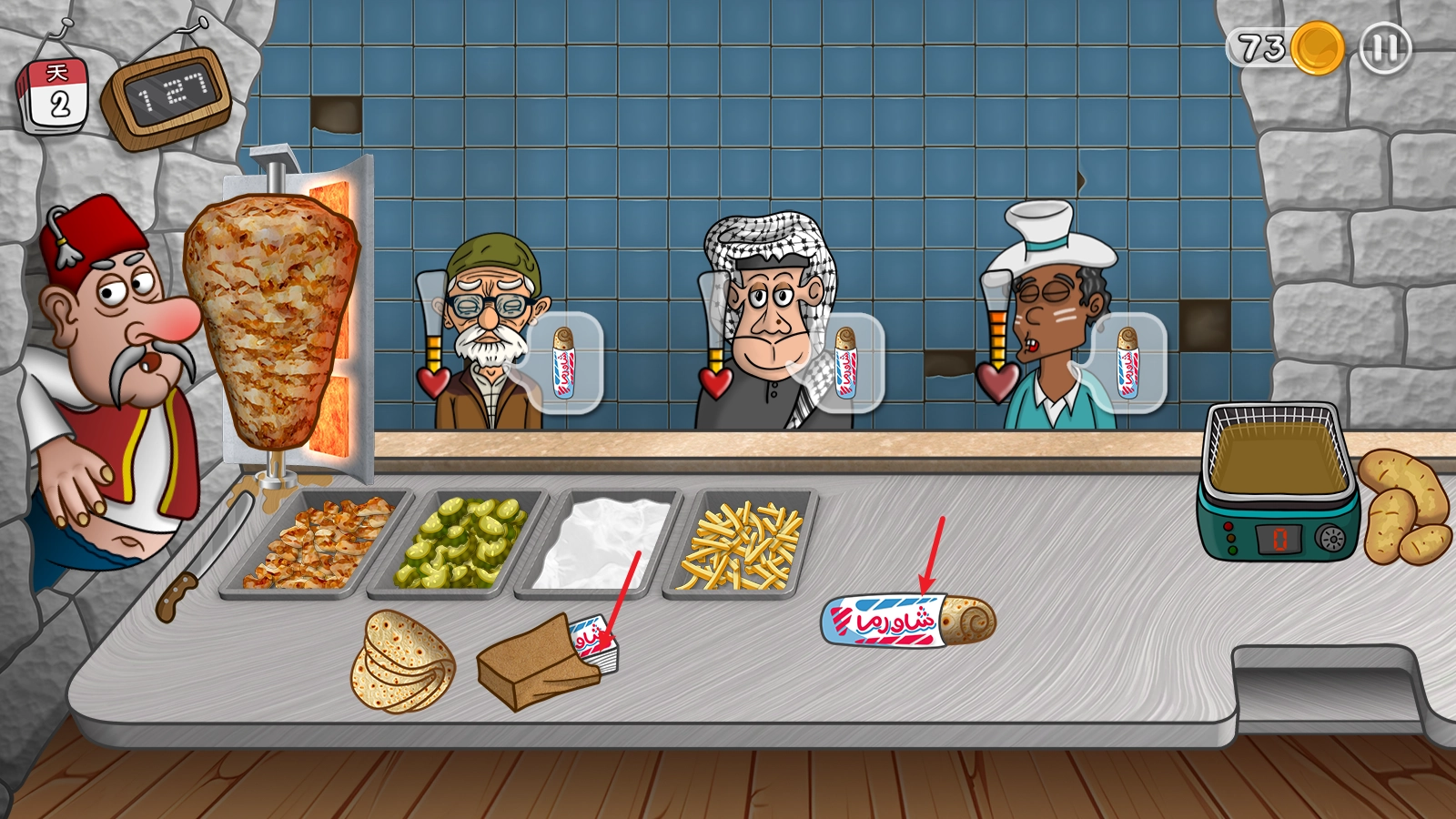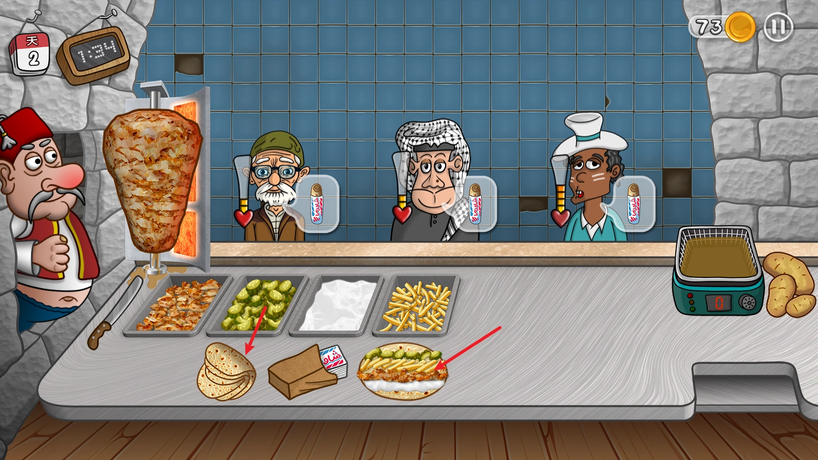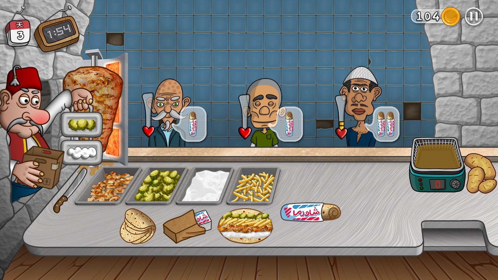 2、随着游戏进程的推进,你会碰到更多不同类型的顾客,得依据他们的口味来定制契合的沙威玛。