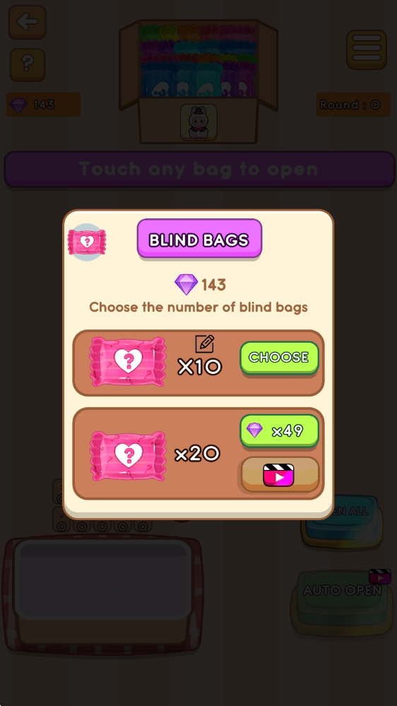 2、你可以自由选择盲袋的目标和数量,尽情享受拆盲袋的快乐,沉浸在这个既刺激又满是惊喜的过程中吧。