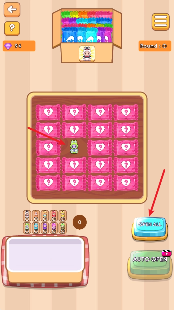 4、正式开始后,点击任意盲盒即可开启,也可点击右下角的“open all”直接全部开启。
