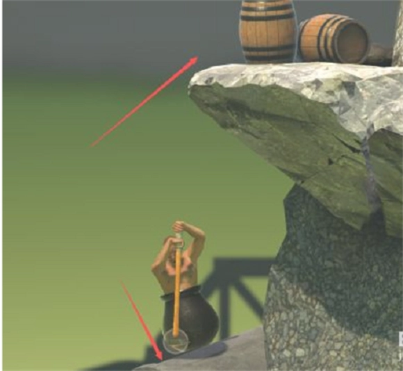 《掘地求升》凭借简洁的游戏机制与深刻的哲学内涵打动玩家。游戏操作直观易懂,玩家仅需借助一把锤子和一口锅攀爬陡峭山峰,然而这份简单背后,是对操作精准度的严苛要求。游戏的挑战核心在于对鼠标操作的精细把控,玩家需反复练习以掌握跳跃与摇摆的技巧,这一技能打磨的过程,既考验着玩家的耐心,也让成功时的成就感更为强烈——每一次跳跃的成功、每一段爬升的推进,都是对玩家操作能力的直接认可。