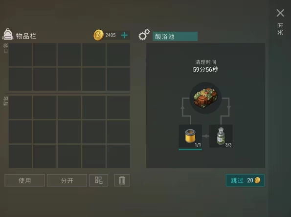 5、获取“起重机钥匙”后,前往港口的摩托艇停放区域。找到起重机并使用该钥匙,即可获得一个外观与感染箱相似的“沉没的盒子”。将其带回家后,需使用酸浴池进行清洗处理,清洗过程需要消耗1个滤芯和3个酸。