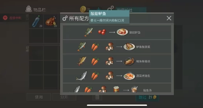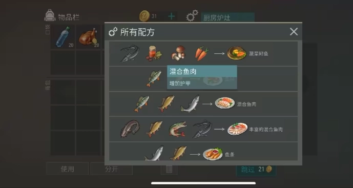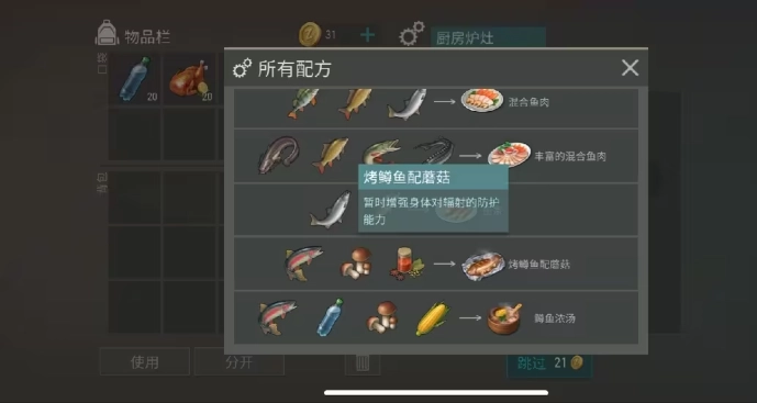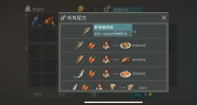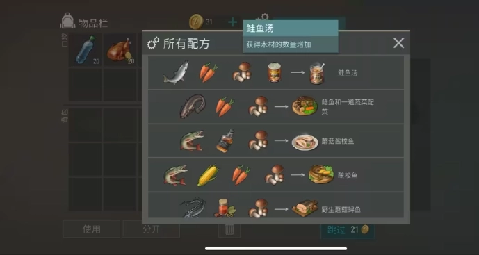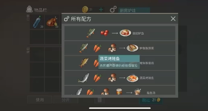 4、蔬菜烤鲑鱼:杀死僵尸获得经验增加。