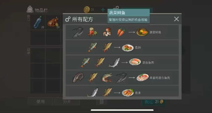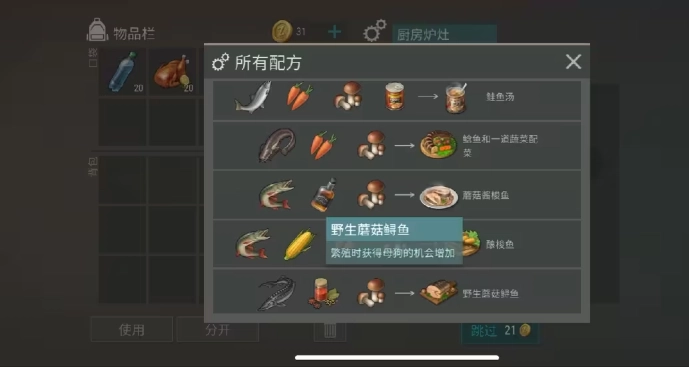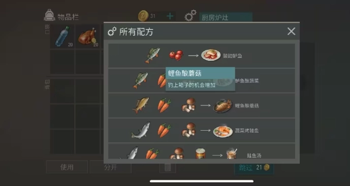 3、鲤鱼酿蘑菇:钓上箱子的机会增加。