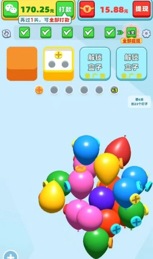 这是一款全新3D风格的趣味打螺丝小游戏,你可“拔不掉”我!它与经典打螺丝玩法有所区别,在游戏里,你会看到大量3D风格的气球,气球上分布着各种颜色的螺丝。你需要通过左右旋转来找到气球上的螺丝,点击就能把螺丝收集到对应颜色的螺丝盒中。当成功收集完所有螺丝后,你就能过关并获得奖励,而且关卡奖励会随着你的挑战进程不断增加哦!