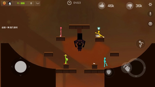1、这款游戏既支持单人闯关,也可以组队挑战,挑选好火柴人角色后,就能开启挑战了。