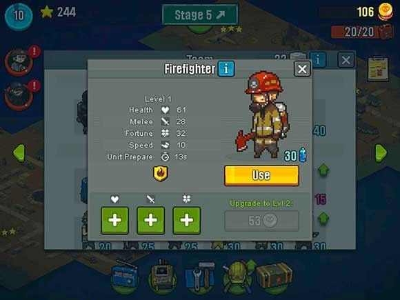 像素风格与紧张音效交织,共同渲染出扣人心弦的末日紧迫感。策略维度丰富多元,不同特性的幸存者单位与僵尸类型组合,要求玩家精准调配阵容。升级机制充满趣味性,更可解锁独特的特殊项目。战斗过程紧张刺激,借助各类道具击退僵尸的体验畅快淋漓,完成挑战还能收获丰厚奖励。