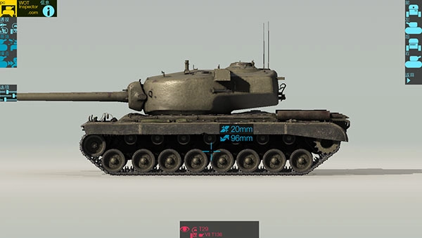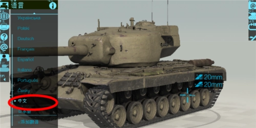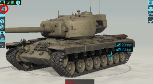 3、而点击透视、等效、撞击、视角,则可以对坦克调整位置,观看具体的数值。