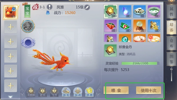灵宠综合战力:根据人物等级记录战力最高的几只灵宠