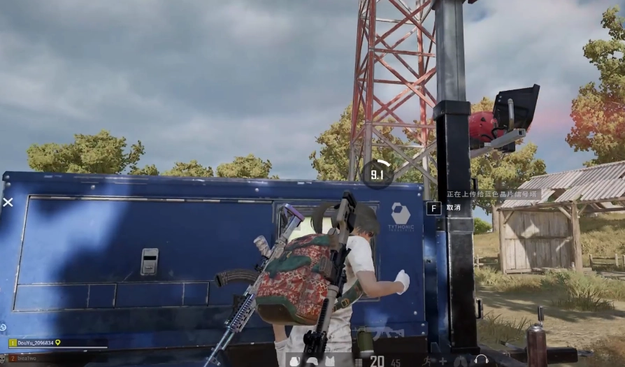2、找到地图中的“蓝色晶片信号塔”,然后把队友的“蓝色晶片”上传给信号塔。