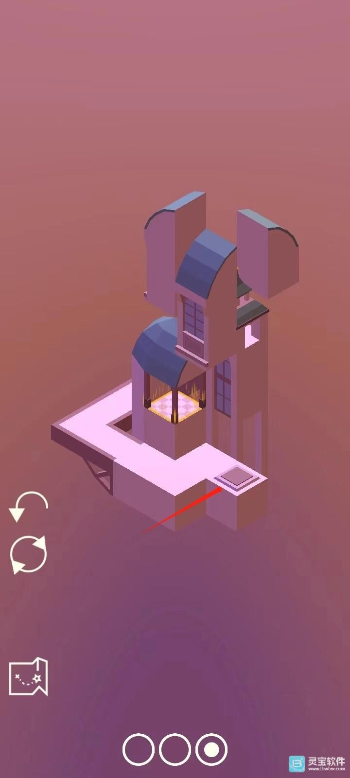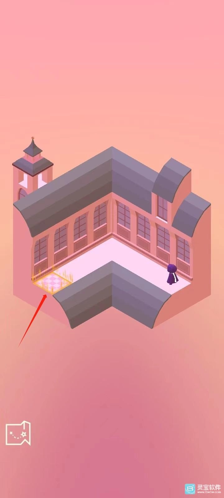 3、第二关则需要走到这个按钮这里,让这里的建筑掉下来,就可以走进去;