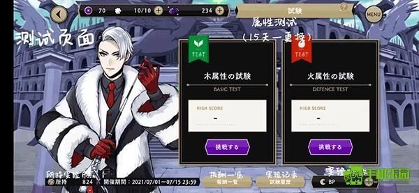 在试炼页面,共有5种属性,分别为木、水、火、无属性和全属性,15天一更换卡片共两种属性魔法,可升级增加角色攻击力