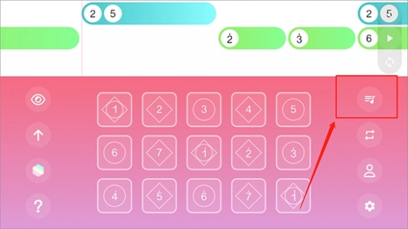 3、点击所选歌曲的标题,稍等一小会儿,乐谱便会加载到练习界面。乐谱被分为三行,其中第一行对应键盘的第一行按钮。