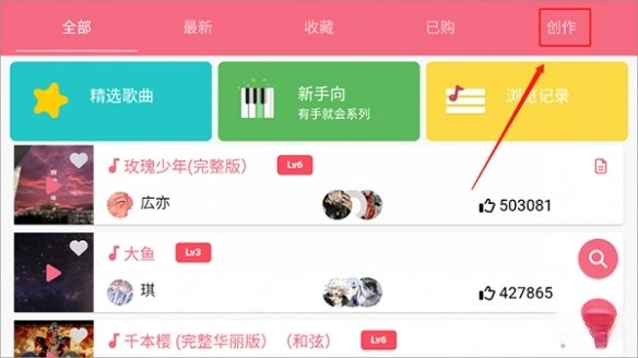 2、在呈现出的歌曲列表当中,挑选出您想要进行练习的歌曲。