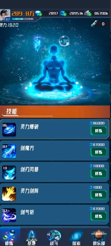 回到游戏主界面后,点击“修炼”按钮,消耗灵石进行修炼能够增强你的战斗能力。