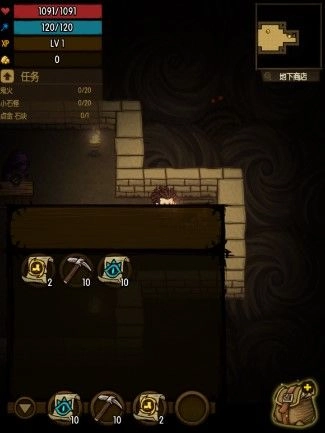 在洞穴探险过程中找到的药水和探险用品会自动排列在屏幕底部的快捷栏里,需要使用时直接点击即可。