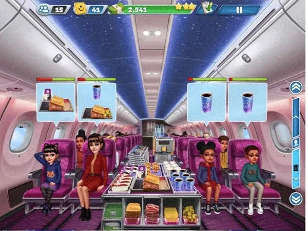 在这款免费且极易让人沉浸其中的时间管理类烹饪游戏里,你可以制作出各种可口的主餐与甜品,然后把它们提供给商业航班上的乘客。