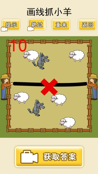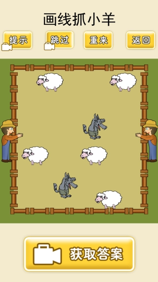 当单只狼发起进攻时,画一条从地面延伸至场景边缘的封闭防线,把狼彻底隔绝在小羊的活动区域之外,这样就能保证简单关卡顺利通关。