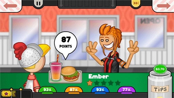 完成餐点制作后,将其递交给顾客,顾客会根据体验进行评分,评分越高,你所能获得的金币奖励也就越丰厚。