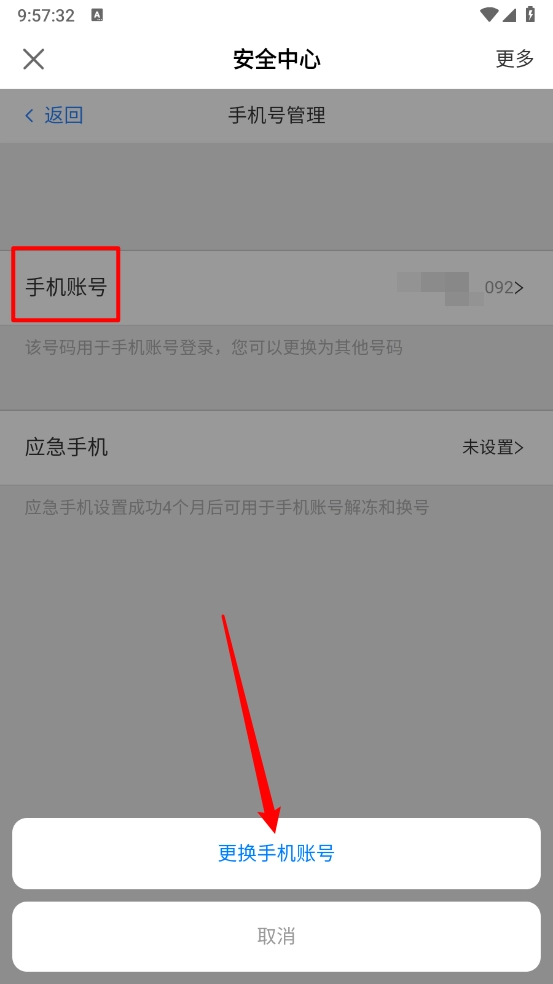 如图所示,操作流程为:先进入新页面并点击“手机账号”选项,此时会弹出一个弹框,接着点击弹框中的“更换手机账号”按钮,之后按照页面提示的步骤完成绑定信息的更改就可以了。
