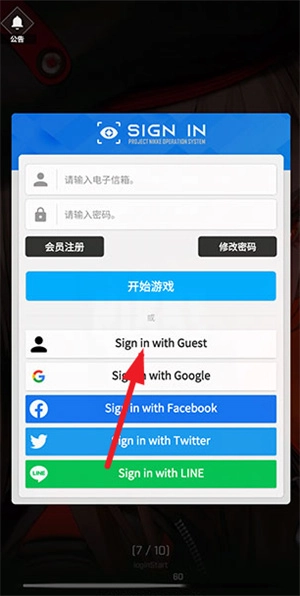 最简单的自然是游客模式,它就在最上方,选好之后就能直接进入游戏。