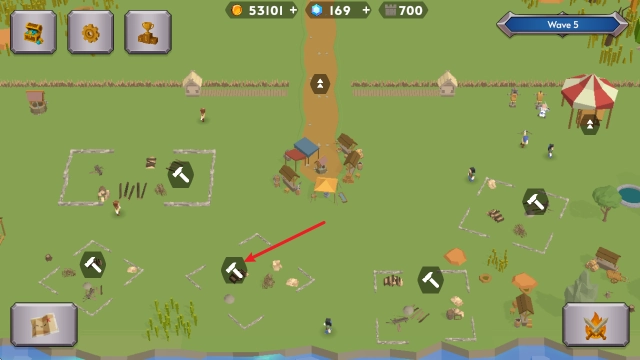 进入游戏后,带有建造图标的土地会清晰呈现,点击该土地就能启动建造流程。