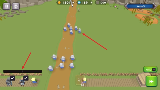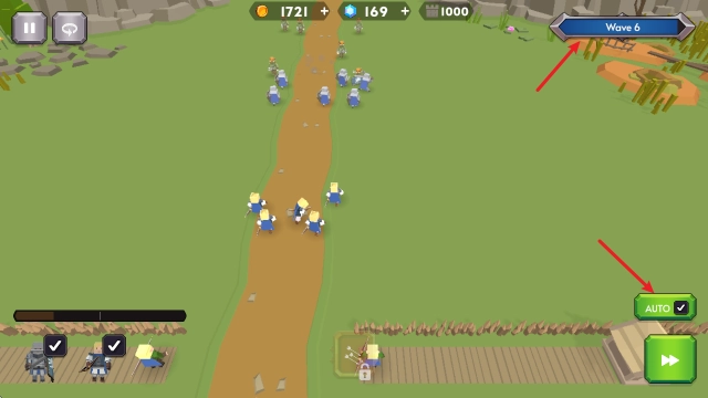 右下角有自动战斗功能,开启后在消灭完一波敌人时,就能自动进入下一波挑战。