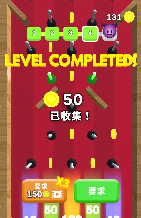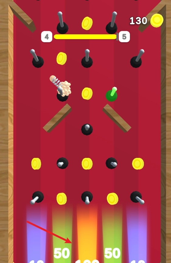 抵达终点后会出现这样的机器,它会依据掉落的位置来确定金币奖励的数量。