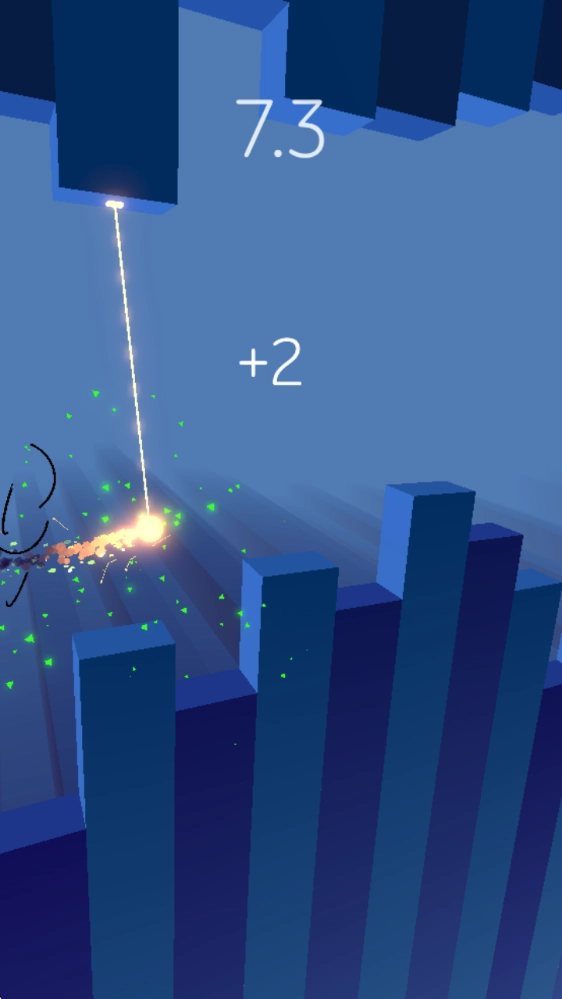 进入游戏后,按住屏幕就能发射火线缠住顶部,接着借助惯性向前荡动。