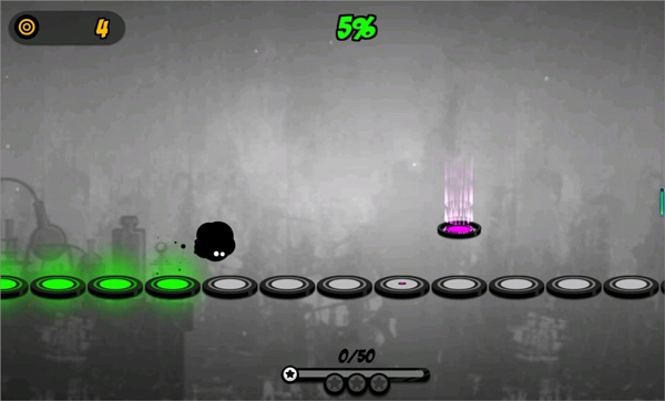 《永不言弃2》是一款休闲风格的横版闯关游戏,作为永不言弃系列的续作,它在玩法上与前作有所区别——采用了横版闯关的模式。游戏中,玩家需要在合适的时机点击屏幕,控制小黑点跳跃以避开障碍,从而争取更高分数。值得注意的是,若想获得更理想的分数,关键在于让小黑点尽可能踩到每一块地板,所以玩家无需持续点击屏幕让小黑点保持跳跃状态。