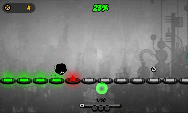 你得点击屏幕,这样小黑点就会跳跃,它还会自己往前移动。