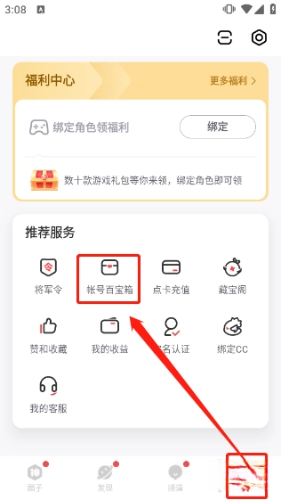 打开网易大神应用,进入界面右下角的【我】页面,接着点击【帐号百宝箱】这一选项。