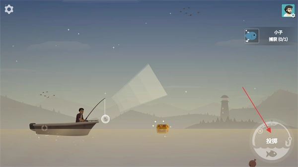 你可以长按右下角的投掷按钮进行蓄力,然后将鱼钩投进海里,这样就能开始钓鱼了。