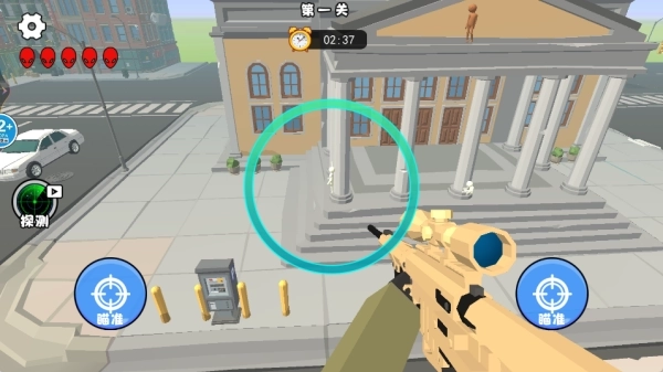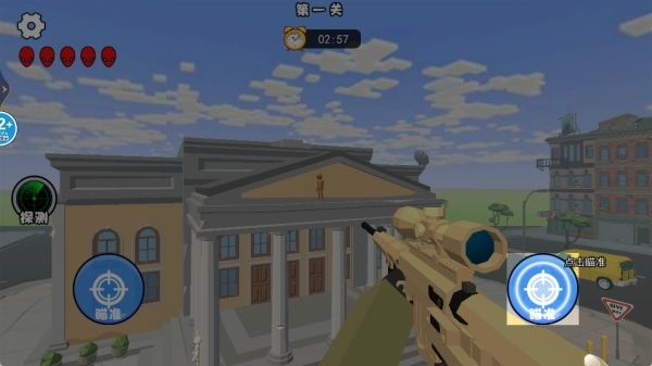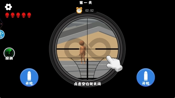 2、点击瞄准按钮即可开启瞄准镜,玩家能够轻松锁定外星人的方位,在外星人实施计划前将其击杀。