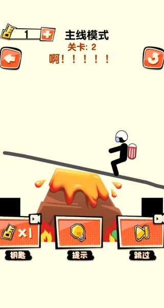 4、当在关卡2遭遇岩浆类危险时,留意角色的移动轨迹,提前在岩浆飞溅的区域绘制遮挡线条,还能借助提示来梳理画线的逻辑。