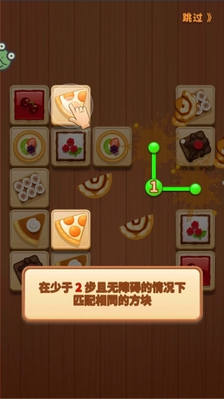 2、用手指连接选中的两个相同方块,要保证连接线的转角不超过三个,并且路径上没有其他方块阻挡。