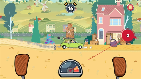 2、对经典憨豆IP进行还原,角色的造型、动作与神态都高度复刻了原版形象,在闯关过程中还会触发憨豆专属的搞笑剧情动画,像翻车后的呆萌反应、送达后的搞怪庆祝等场景,氛围感直接拉满。