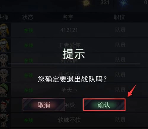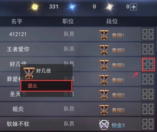 三、战队退出方法 1、找到自己的名字位置,仔细查看后点击对应的按钮即可,操作位置如图所示。