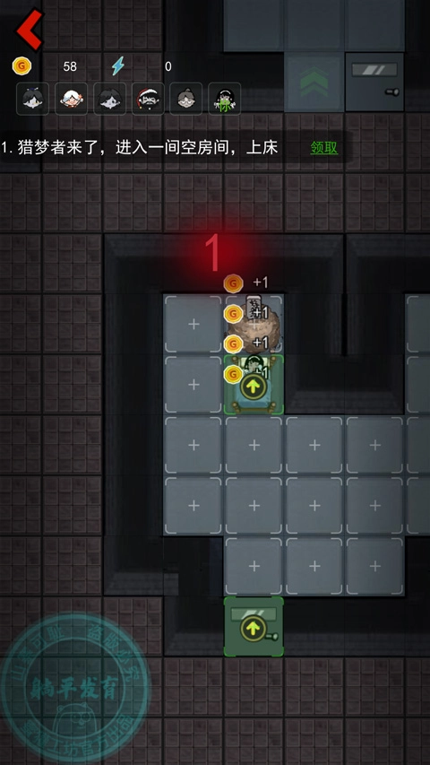 资源双线增长系统:金币(通过睡觉、击败猛鬼获取)用于升级床铺(经济来源)和炮台(输出),电力(通过游戏机产出)用于建造高级防御设施,形成双线战略。