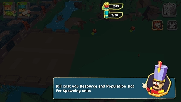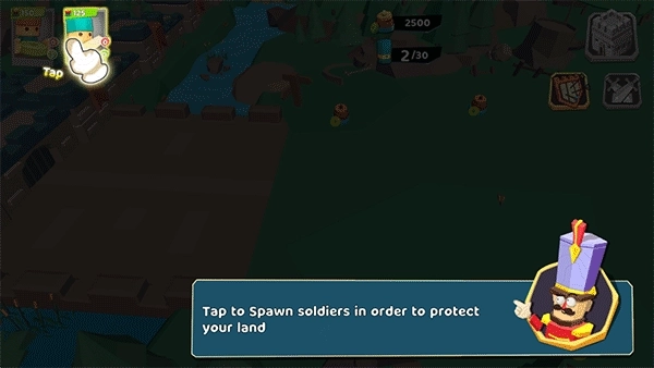 1、进入游戏后,点击页面左上角的“生成士兵”按钮,以此来守护你的领地。