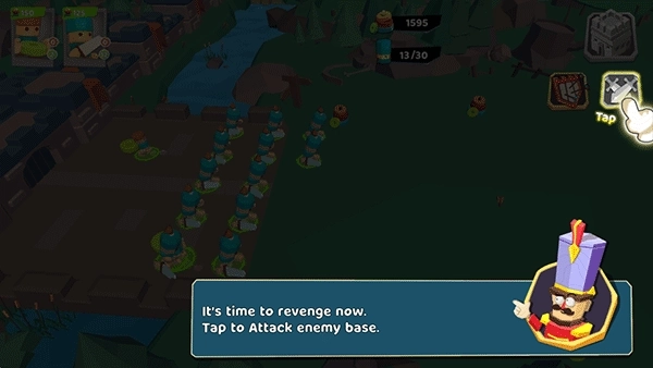 5、再召唤10个士兵!复仇的时刻到了。点击攻击敌方基地,把所有敌人都消灭掉!