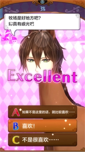 《马之王子殿下》是一款轻松有趣的休闲恋爱养成游戏。进入游戏后,玩家作为主角,会看到一匹长着帅气型男面孔的马,瞬间就能感受到惊喜与激动。在机缘巧合下,你开始陪伴这匹马进行训练,由此引发了一连串的故事。这究竟是一场甜蜜的美梦,还是一场离奇的噩梦呢?农场的奇妙冒险就此拉开序幕,各位主角们快拿起手机,来“调教”你的专属人头马吧!