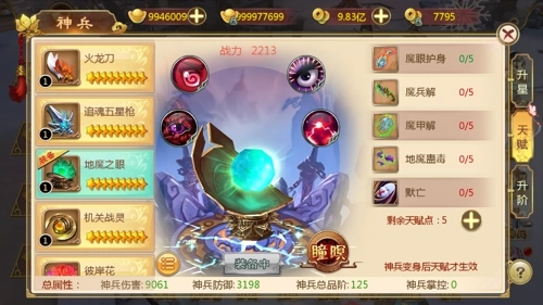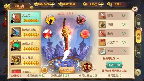分析:火龙刀强调伤害,而防御加成比较适合刀客,每个神兵上限有15个天赋点,而每个天赋五点可以点满,这时候如果取舍就要看本身的职业和对属性的需求了。