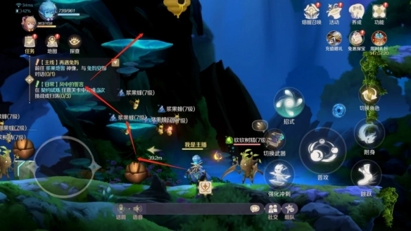 4、后续关卡里,第一波敌人是树精搭配榴莲怪。这里要注意别直接冲到右侧低洼区域硬拼,不然榴莲怪会让你深刻体会到出反甲装备的必要性。建议先清理掉树精,再逐步靠近榴莲怪慢慢消耗将其击杀。第二波是蜜蜂与树精的组合,难度不大。第三波则是大树精,关键在于观察它的攻击前摇动作,及时闪避躲开攻击即可。
