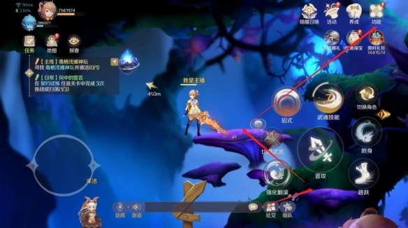 5、接下来跟着主线引导去帮库洛找哨子,完成这一步后库洛就会开启后续的通道(路线如图所示)。主要是这个蘑菇长得太像背景了,我一开始都没意识到能踩上去,而且目标位置只有箭头指示方向,并没有显示具体路线。