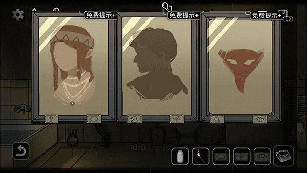 1、在马桶里拿到【卡片:牙】。洗衣机上的恶魔相框处可获取【卡片:眼】与【卡片:猫】。女子相框上能得到【卡片:十字】和【卡片:叶子】。镜像中的男子相框里可找到【卡片:鸟】。