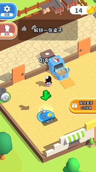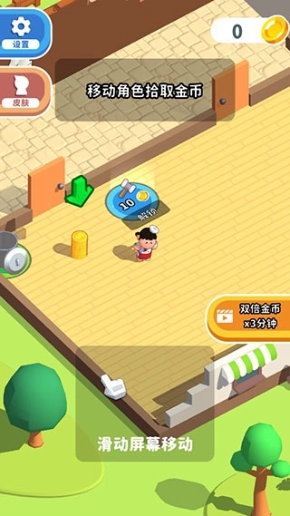 1、进入游戏后,我们会出现在一家餐厅场景中,周围散落着一些金币,接下来需要操控角色移动去收集这些金币。