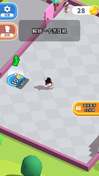2、等我们攒够金币后,就去箭头所指的位置,解锁一台烹饪机。