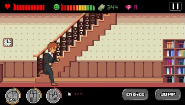 6、工作阶段一号!赚钱吧少年!up这是五项全不到九的职员路线,收集钱币赚取工资(商城可增加对应职业单金币收入)每个职业有自己特别的选项,根据你的属性(隐藏)来决定成功与否,是否成为成功人士,值得注意的是赚钱的时候会减幸福度(工作就输了——大老师)小心自杀哦,食物会加幸福度,烟会减少健康度集齐七个香烟即可当场去世,注意规避。