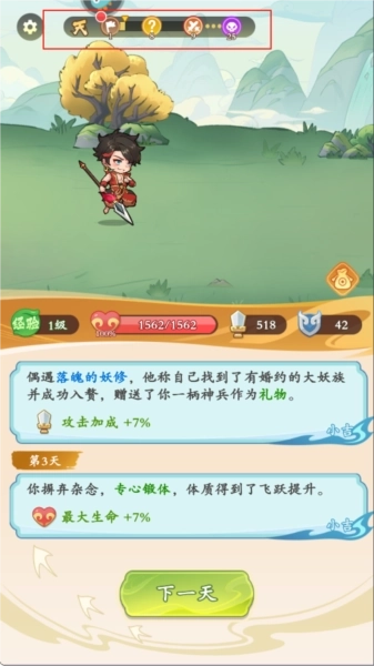 点击下一天会触发不同的事件,玩家需要对触发的事件做出抉择